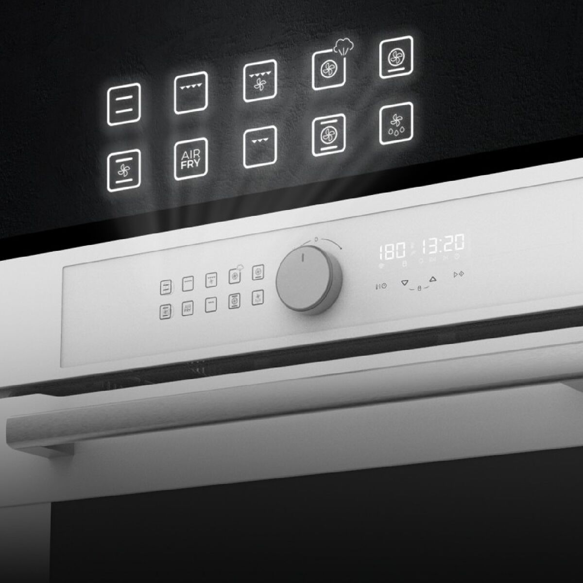 Bolero Hexa AF316000 Multifunktionsovn fra Cecotec er et indbygningsapparat, der kombinerer alsidighed og avanceret teknologi for at tilbyde en komplet madlavningsoplevelse. Med en kapacitet på 81 liter giver det rummelige indre mulighed for at tilberede store mængder eller flere retter samtidigt takket være teleskopskinner og fem forskellige niveauer, hvilket sikrer præcis og effektiv madlavning. Denne ovn har den innovative Airfryer Master-teknologi, som bruger tvungen varm luft til at tilberede mad med minimal olie, hvilket giver sprøde ydersider og saftige indersider med fokus på sund madlavning. Dens effekt på 3400 W sikrer hurtig og jævn opvarmning. Den har et enkelt og ergonomisk betjeningspanel med en enkelt centralt placeret drejeknap til nem styring af de mange funktioner. Derudover tilbyder den i alt 11 automatiske programmer, herunder Konvektion, Maxi Grill, Hurtigmadlavning, Steam Assist, Steam EasyClean, Fan Grill, Multicooking, Pizza Master, 3D Cooking og optøning, som automatisk indstiller tid og temperatur for optimale resultater uden besvær. Dens hvide farve og glasfinish giver et moderne og elegant design, der passer perfekt til moderne køkkener. Funktionen Steam Assist gør det muligt at tilberede mad med damp for at bevare saftighed og næringsstoffer, mens Steam EasyClean letter rengøringen ved at løsne snavs med damp uden brug af skrappe rengøringsmidler. Den inkluderer også en Pizza Stone XXL på 35 cm til perfekt pizzadej med Pizza Master-funktionen. 3D Cooking-teknologien sikrer jævn varmefordeling i hele ovnrummet, så man kan tilberede mad på op til fem niveauer samtidigt med ensartede resultater. Der medfølger desuden en SS Airfry Basket i stål, designet til at optimere Airfryer-funktionen. Med energiklasse A garanterer ovnen effektivt og miljøvenligt strømforbrug, hvilket giver løbende besparelser uden at gå på kompromis med ydelsen. Bolero Hexa AF316000 fra Cecotec kombinerer stor kapacitet med avancerede funktioner, ideel til brugere, der ønsker en pålidelig, multifunktionel og højtydende ovn til køkkenet.
