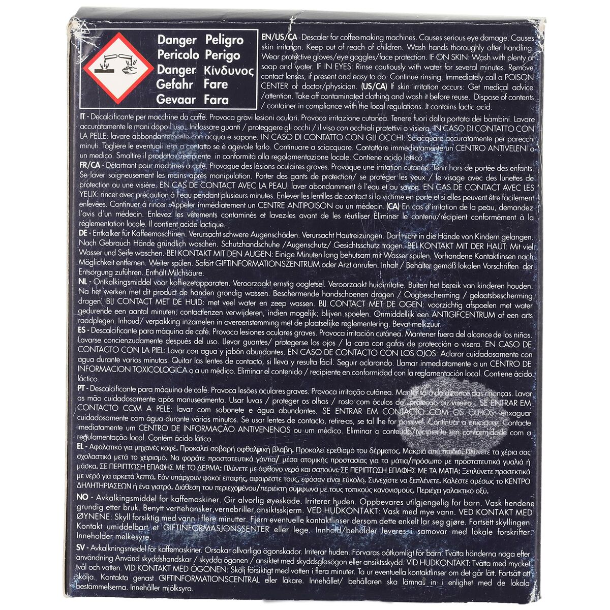 De DeLonghi afkalker model 5513296011 er et produkt designet specielt til at beskytte og vedligeholde Delonghi fuldautomatiske kaffemaskiner i optimal stand ved effektivt at fjerne kalkaflejringer, som kan påvirke maskinens ydeevne og levetid. Denne afkalker skiller sig ud ved sin økologiske formel baseret på helt naturlig mælkesyre, som ikke blot sikrer en sikker og effektiv fjernelse af kalk, men også er miljøvenlig og minimerer den forurenende effekt, som kemiske produkter ofte har. Sættet indeholder to flasker á 100 ml, med muligheder for at forberede opløsninger til forskellige tankkapaciteter, fra 100 ml, 200 ml og helt op til 100 liter behandlet vand, hvilket giver fleksibilitet til forskellige behov og modeller af fuldautomatiske kaffemaskiner. Produktet leveres i flydende form i hvide plastflasker, hvilket gør det nemt at anvende og opbevare sikkert. Afkalkningsprocessen hjælper med at bevare kaffens kvalitet ved at bevare de autentiske aromaer og undgå dyre reparationer forårsaget af kalkaflejringer i maskinens indre rør og komponenter. Takket være sin fremragende kompatibilitet med Delonghi-maskiner og naturlige sammensætning er dette produkt en praktisk og bæredygtig løsning til regelmæssig vedligeholdelse, som sikrer optimal funktion og forlænger kaffemaskinens levetid. Kort sagt repræsenterer DeLonghi afkalker 5513296011 en pålidelig, effektiv og miljøvenlig løsning til pleje og vedligeholdelse af dine fuldautomatiske kaffemaskiner.