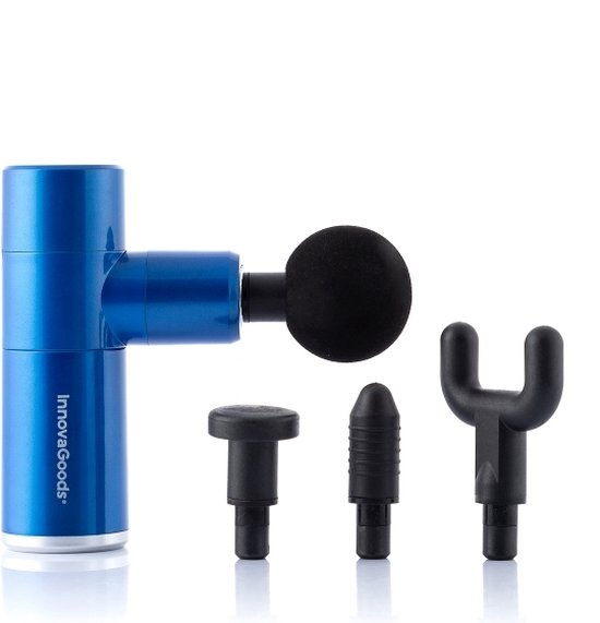 En original mini-perkussions-massagebøsse (konstante bevægelser), der er ideel til afslapning, genopretning af muskler og stivhed. Det har mange gavnlige virkninger, der giver stor lindring, hvile, afslapning og velvære. Den er især en stor hjælp efter et intensivt sportspas (styrketræning, løb osv.), men den er også meget nyttig til at afhjælpe de sædvanlige gener i ryggen, nakken osv. Dens kompakte, genopladelige, lette og bærbare design gør den nem at bruge, transportere og opbevare, så den kan tages med overalt med total komfort og kan opbevares på et lille sted. Den kan bruges til forskellige typer massage (generel massage, sportsmassage og genoptræning). Generel massage mindsker muskelstivhed og spændinger forårsaget af daglige aktiviteter. Sportsmassage anvendes efter sportsaktiviteter for at afspænde muskelfibrene, reducere stivhed og forhindre, at der opstår stivhed. Genoptræningsmassagen afslapper de områder af kroppen, hvor muskelknuder eller stivhed opstår, og løsner sener og led efter overanstrengelse. Denne ergonomiske, multifunktionelle massagepistol har 4 hastigheder (1500-3200 b.p.m.), automatisk slukning (15 min.) og 4 udskiftelige hoveder (U, kugleformet, flad, spids). Det kugleformede hoved er til store muskelgrupper, det flade hoved er til specifikke muskler i en hvilken som helst del af kroppen, det lille hoved er til lokale områder (sener eller led), og det U-formede hoved er til rygsøjlen, nakken, fødderne og underarmene. Den er også meget nem at bruge, idet du blot skal trykke på apparatet og bevæge det over det område, der skal behandles, med blide cirkulære eller op- og nedadgående bevægelser. Inkluderer USB-opladerkabel og brugsanvisning.